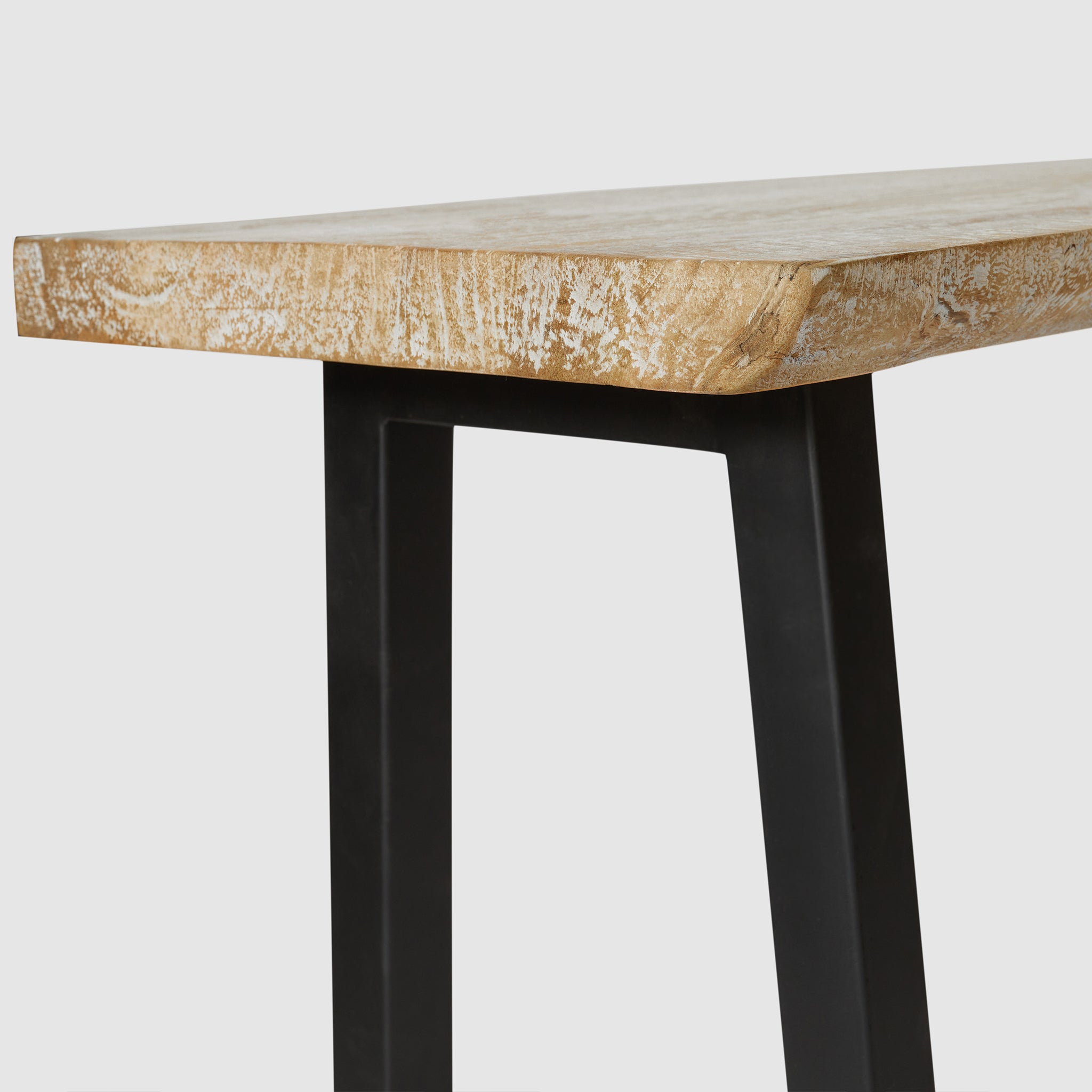 The Aspen Bar Table is a stunning blend of natural craftsmanship and modern design. Handcrafted from solid mango wood, its live edge tabletop highlights the organic beauty and distinct grain of the wood, ensuring that no two tables are ever the same. Supported by sleek black metal legs, this larger version provides ample space for dining or entertaining, making it both functional and visually captivating. The Aspen Bar Table is more than just furniture—it's a unique statement piece that brings rustic elegance to any room.