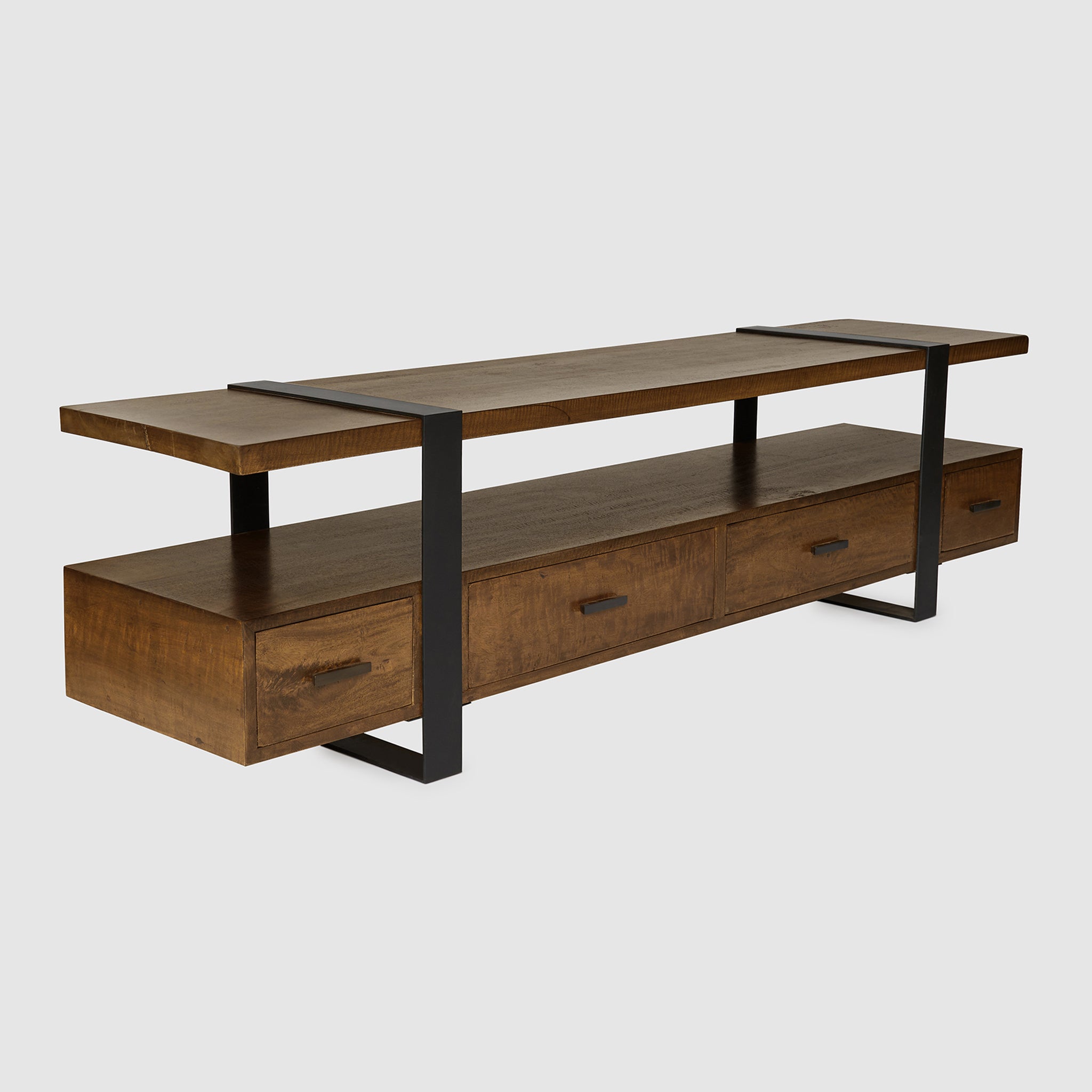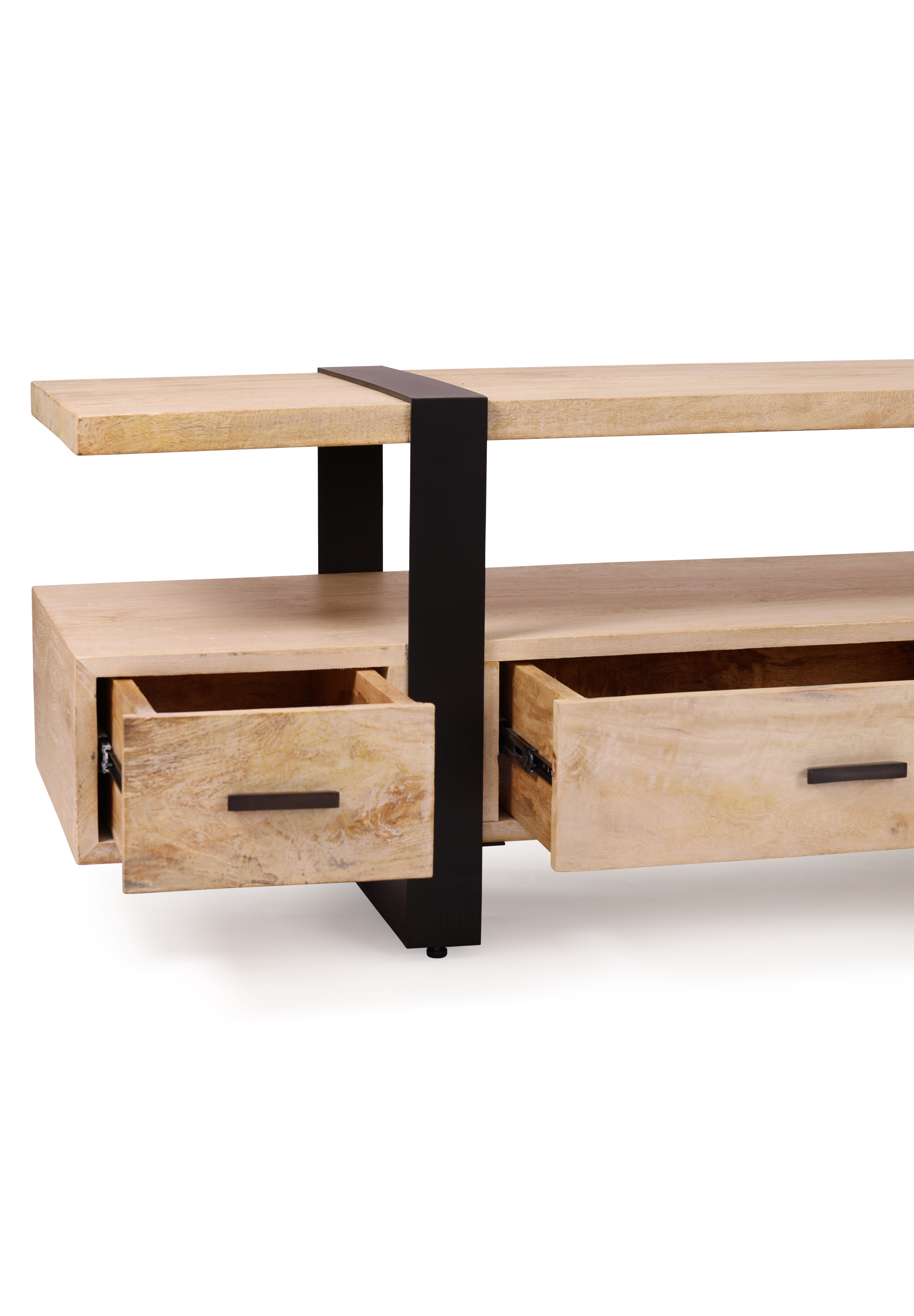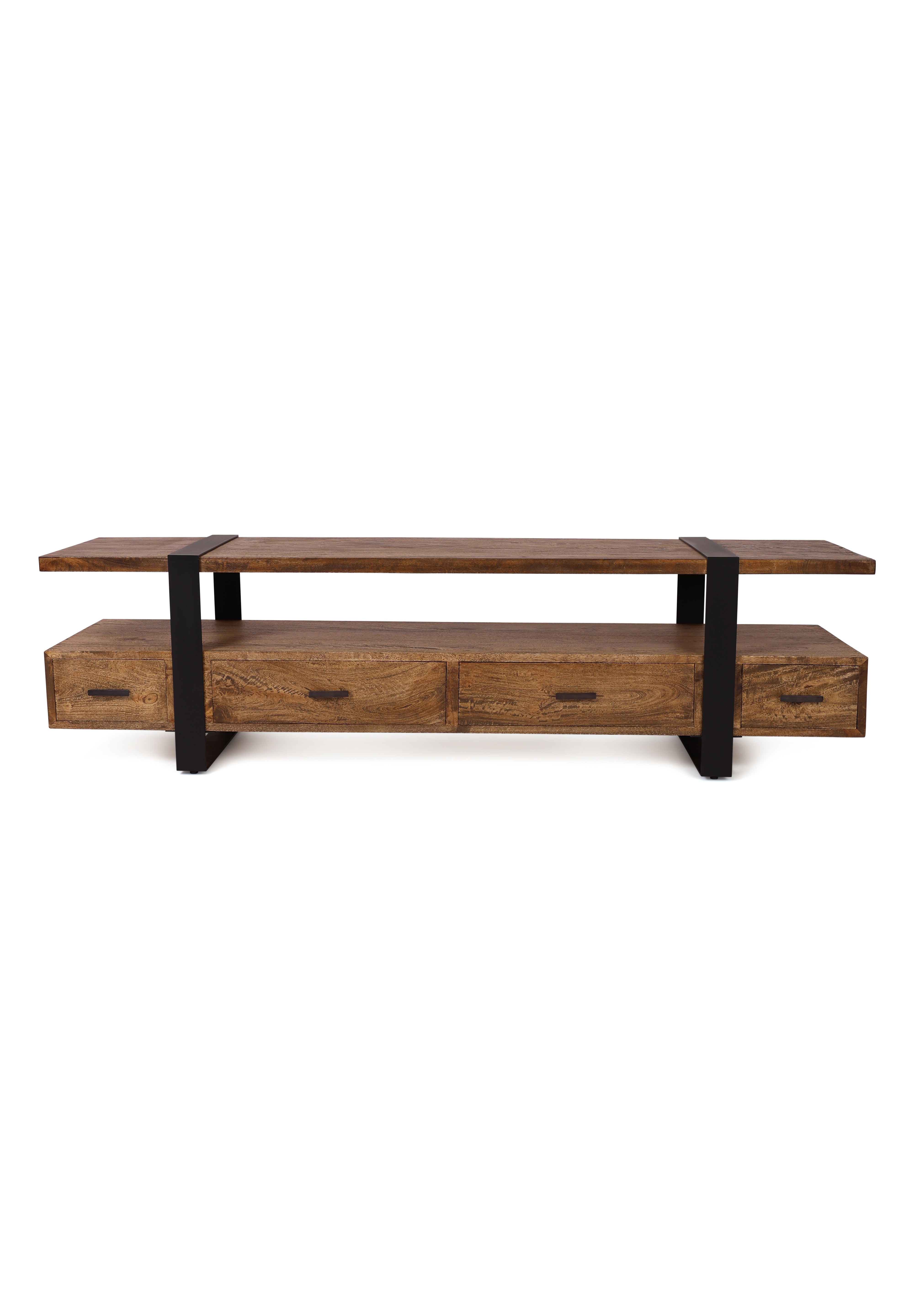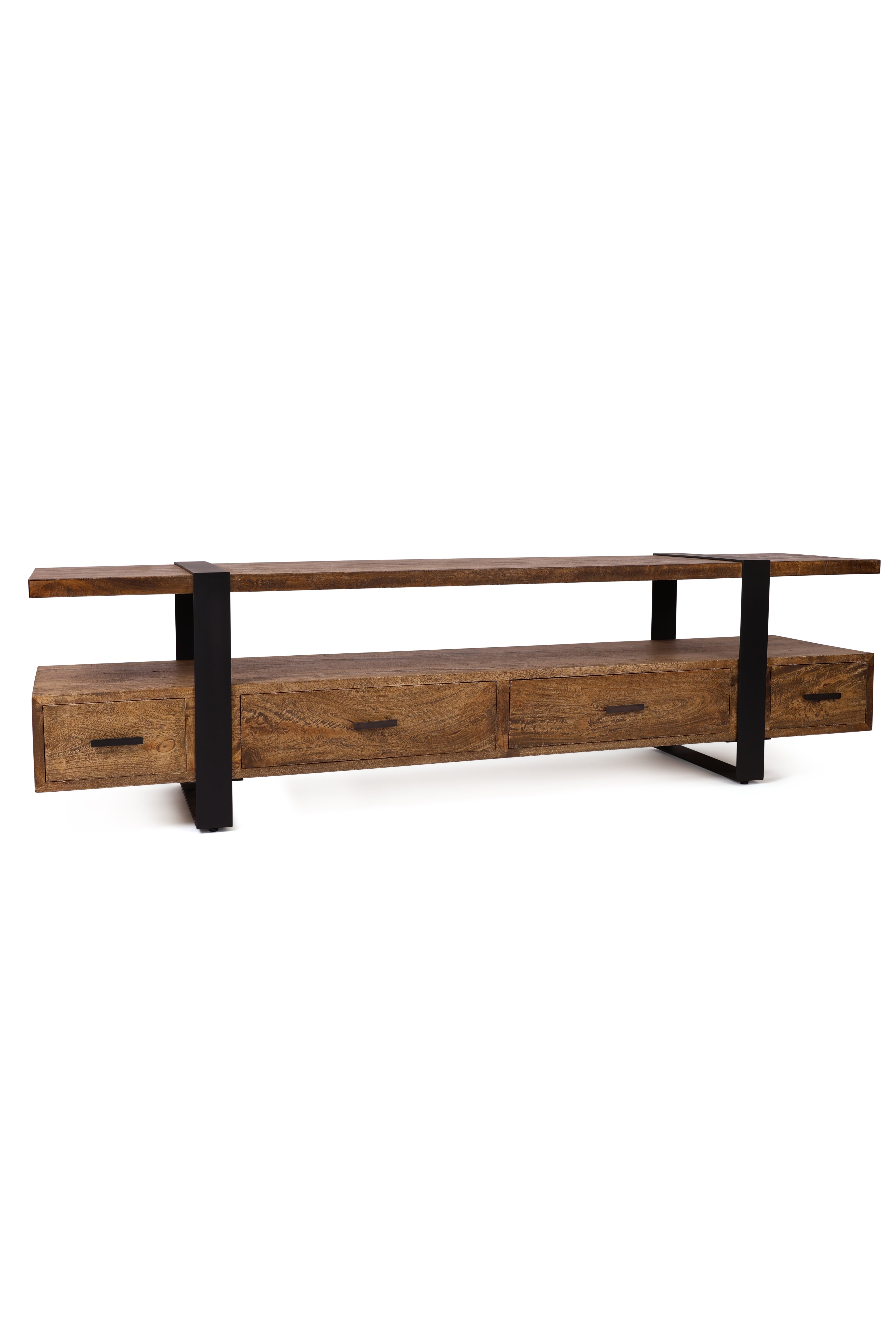 Introducing the Brio TV Unit, a striking fusion of form and function. Nestled within a sleek black metal frame, the Brio boasts four spacious drawers, effortlessly catering to your storage needs while adding a touch of modern sophistication. This unit seamlessly marries the robustness of its frame with the utility of its design. The Brio TV Unit isn't just an entertainment hub—it's a testament to sustainable luxury and contemporary craftsmanship, setting the tone for refined living spaces.
