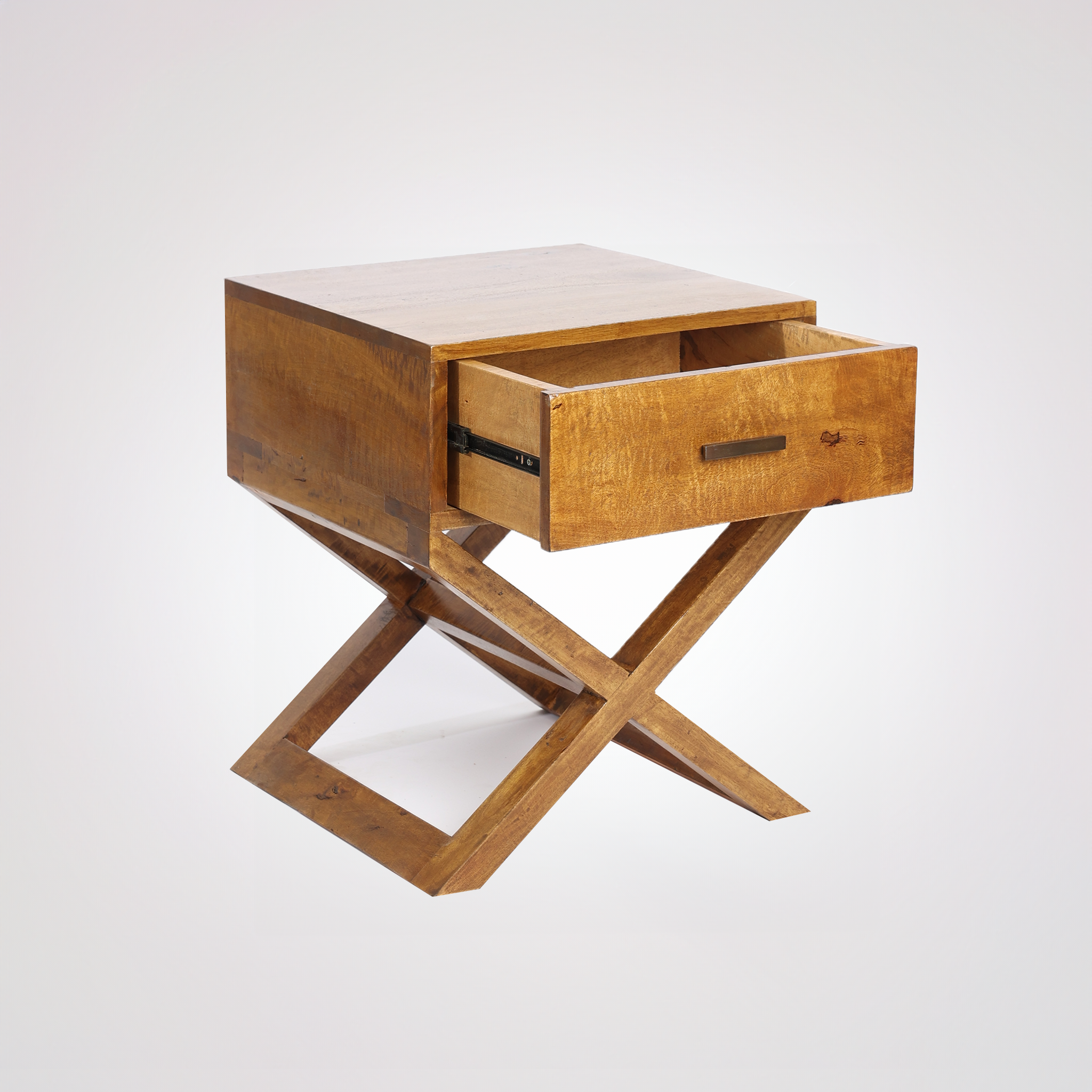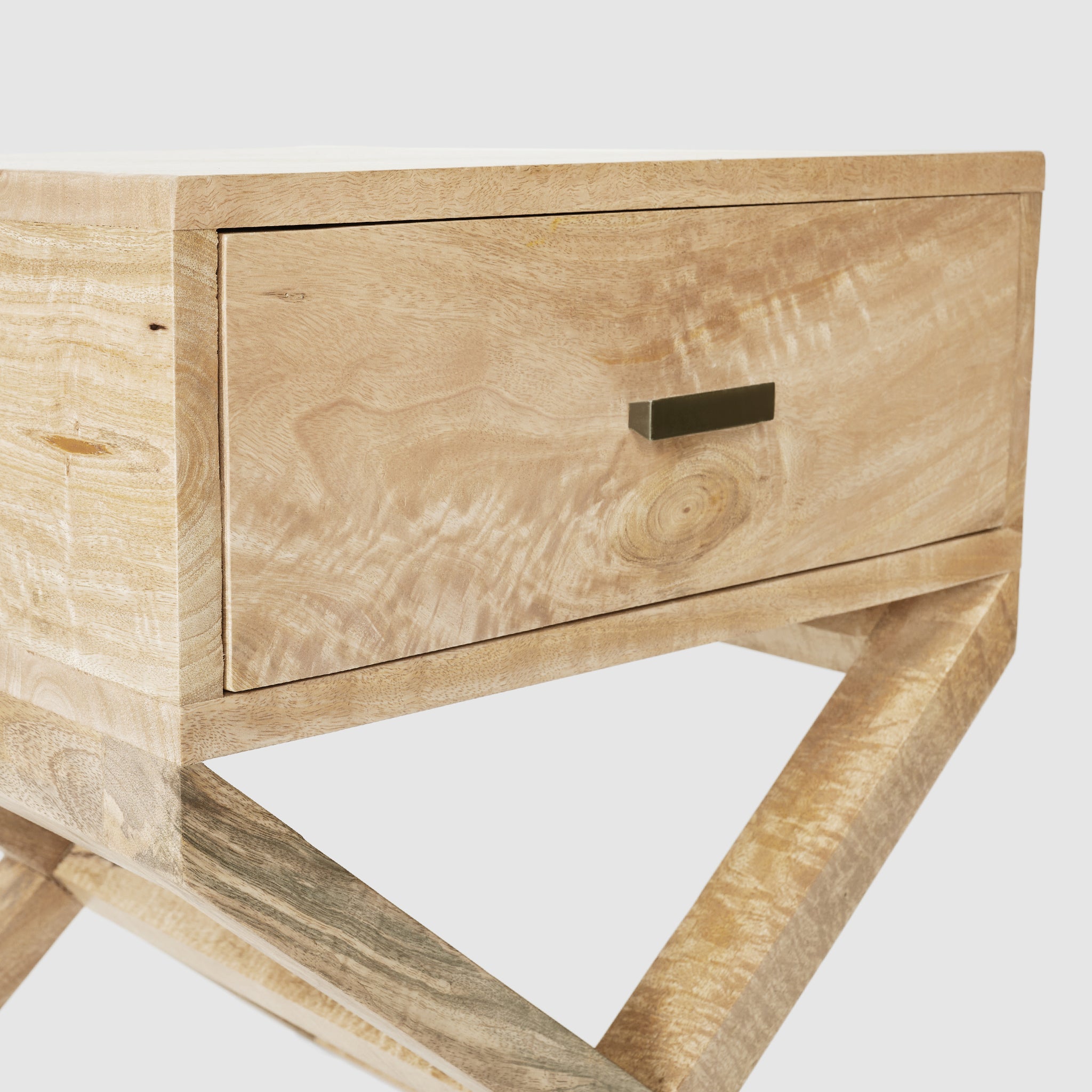 Introducing the Celesta Bedside Table, where the enchanting charm of solid mango wood meets the elegance of contemporary design. The Celesta, adorned with a singular spacious drawer, showcases the cross leg design, lending an air of sophistication and flair. Each swirl of the mango wood's grain carries with it a unique narrative, making the Celesta more than just a table—it's a conversation piece. This bedside companion is not merely a functional furnishing; it's an emblem of sustainable luxury and refined craftsmanship, poised to elevate any nocturnal sanctuary.