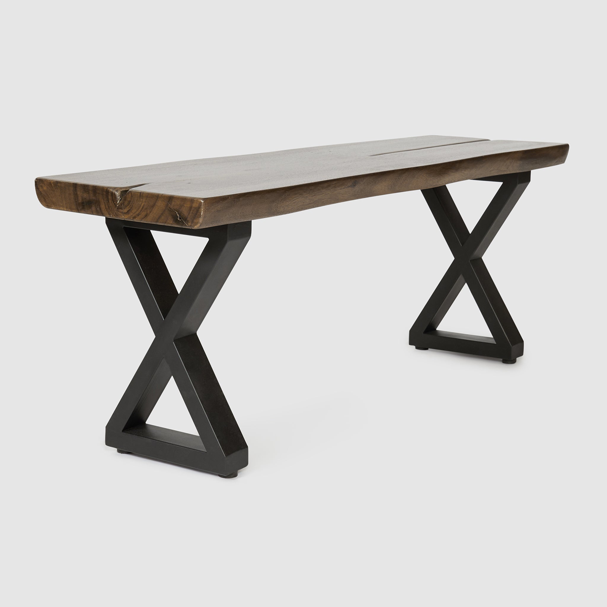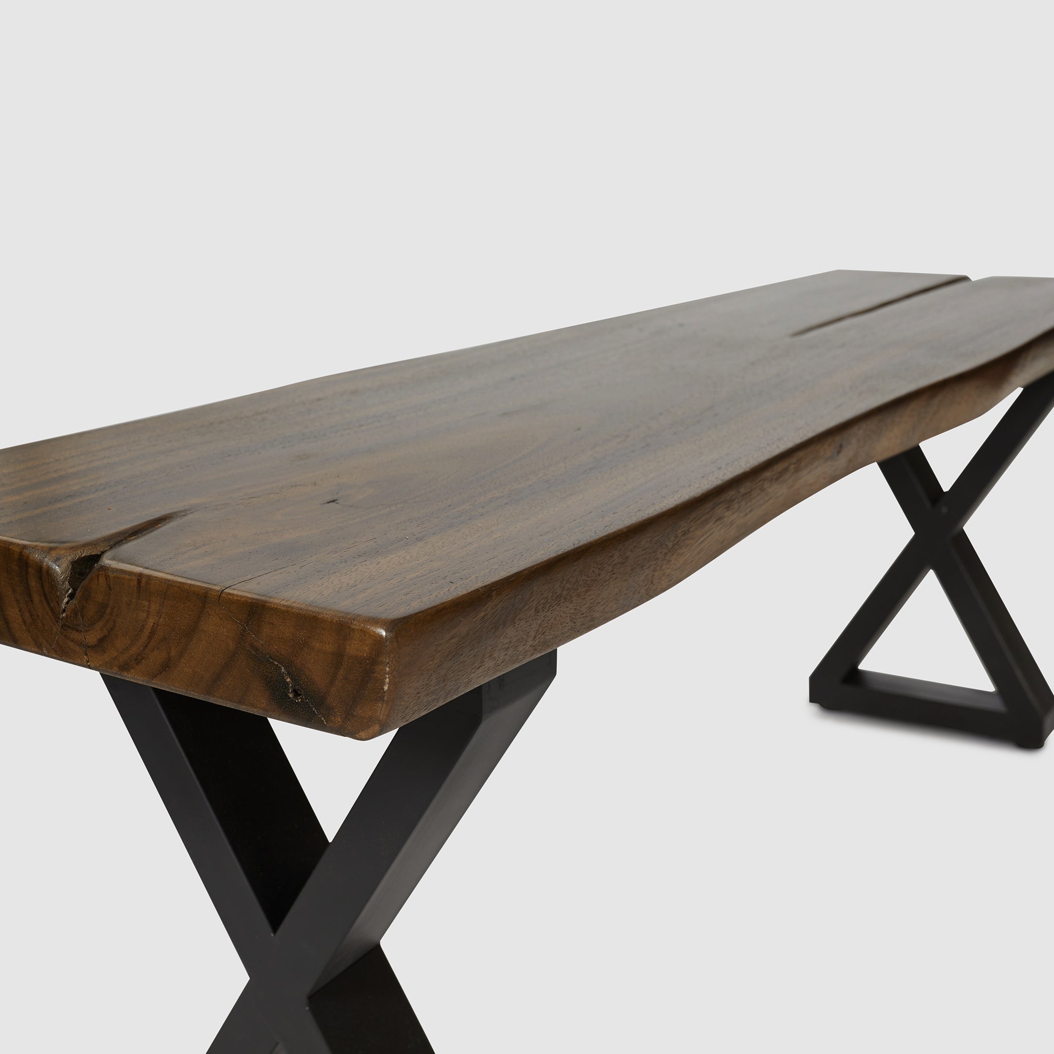 Introducing the Ceres Bench which showcases the beauty of a live edge design, with each curve and detail of the suar wood uniquely preserved. Handmade with care, no two benches are identical, offering you a one-of-a-kind piece that reflects the natural character of the wood. The sleek yet sturdy base pairs beautifully with the organic wood, making it an ideal choice for living rooms, dining spaces, or bedrooms. Ceres Bench, where the untamed elegance of solid suar wood comes to life. Every bench, with its live edge, tells a story of nature's raw artistry, making each piece distinctively its own. Paired with striking black metal legs in a characteristic 'X' design, the Ceres Bench is a harmonious fusion of rustic charm and modern finesse. This bench is not just seating—it's a testament to sustainable luxury, epitomising the intricate ballet between nature's allure and artisan craftsmanship.