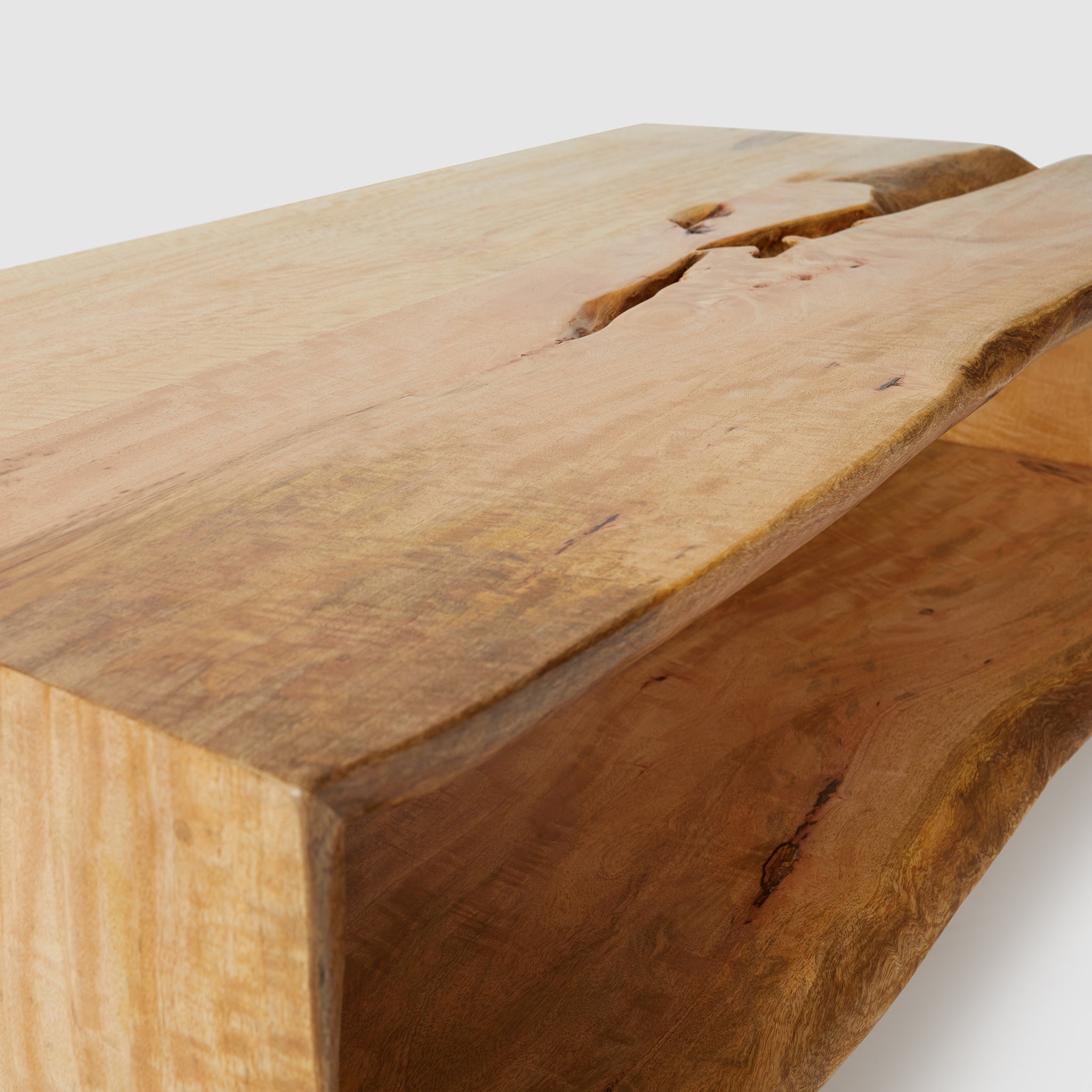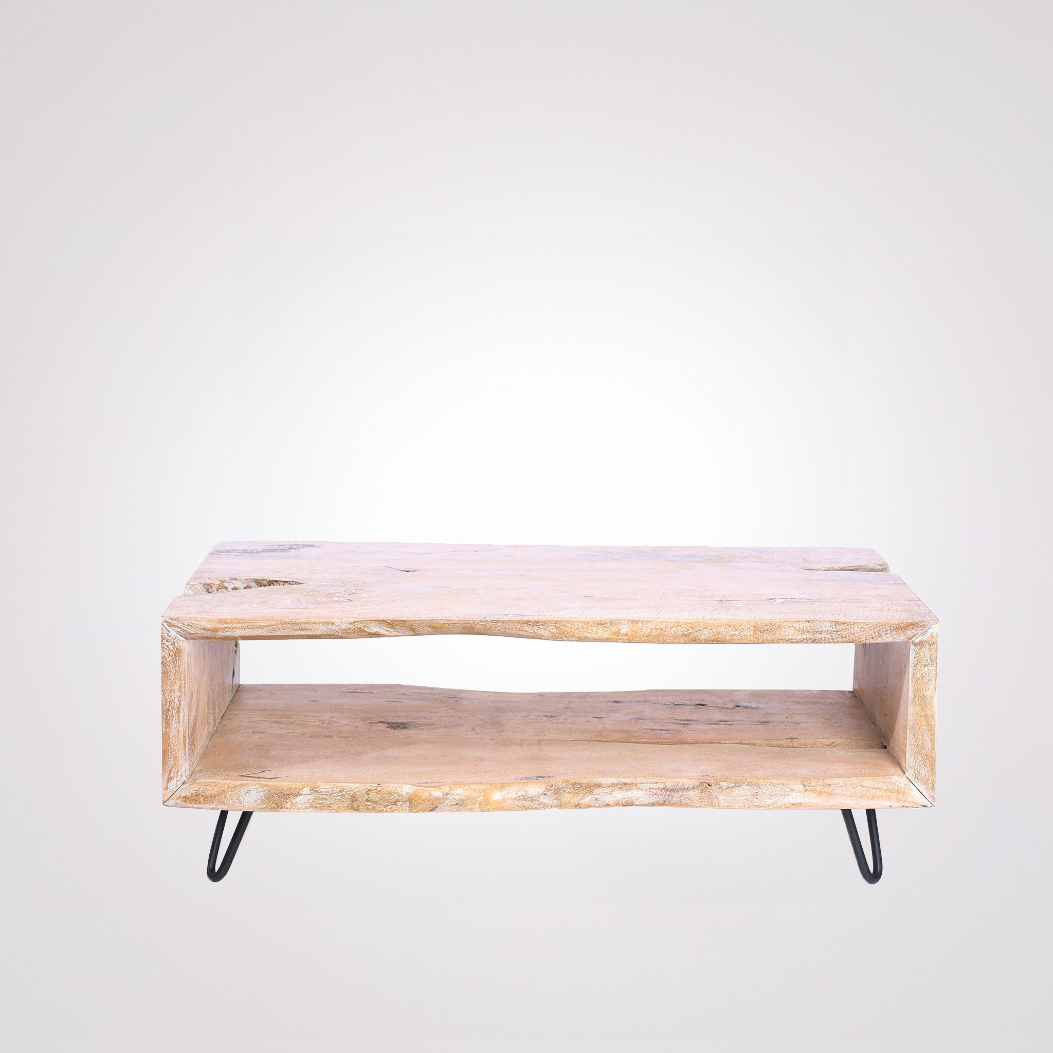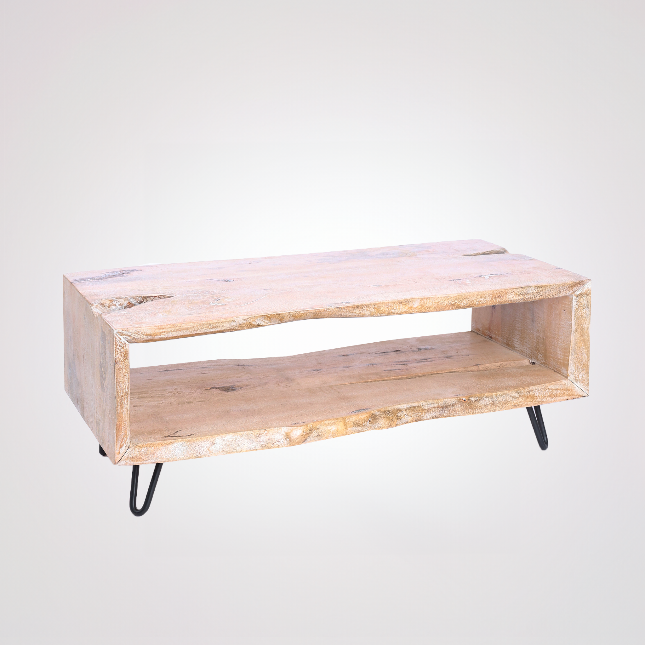 Introducing the Cintra coffee table, an embodiment of nature's raw elegance paired with thoughtful design. Carved from solid mango wood, Cintra boasts a captivating live edge on all sides, revealing the intimate stories and designs of its origins. Beneath its surface, an open space awaits, offering both a visual appeal and a functional storage solution. The Cintra is more than just a table; it's a harmonious blend of nature's authenticity and purposeful craftsmanship, destined to enrich any living space.