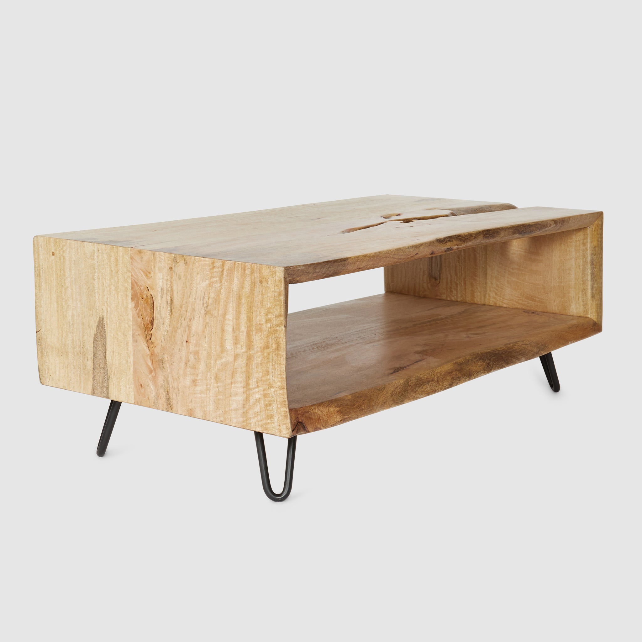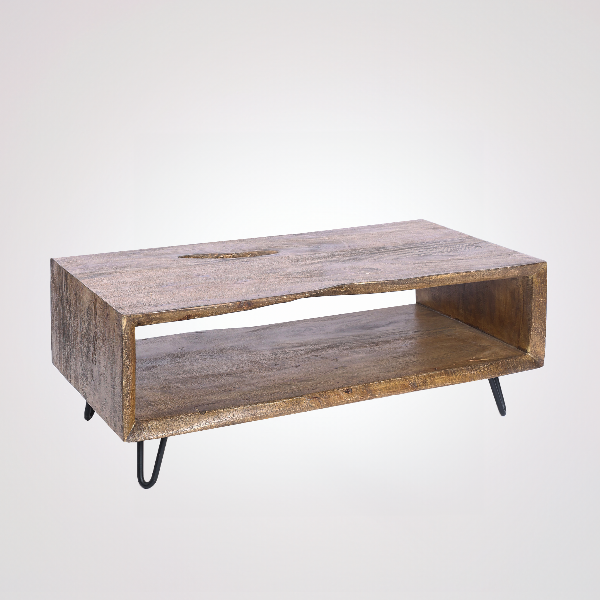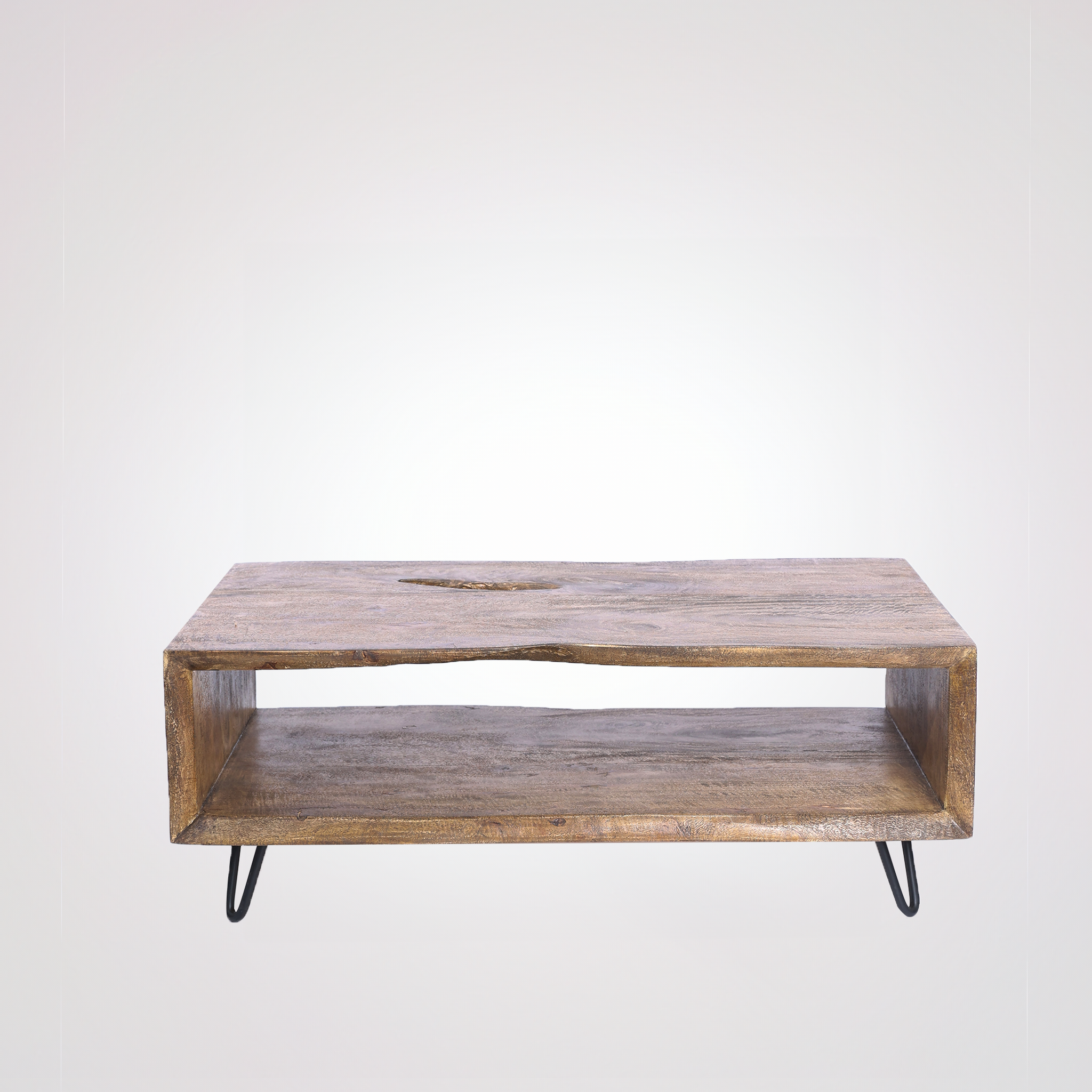 Introducing the Cintra coffee table, an embodiment of nature's raw elegance paired with thoughtful design. Carved from solid mango wood, Cintra boasts a captivating live edge on all sides, revealing the intimate stories and designs of its origins. Beneath its surface, an open space awaits, offering both a visual appeal and a functional storage solution. The Cintra is more than just a table; it's a harmonious blend of nature's authenticity and purposeful craftsmanship, destined to enrich any living space.