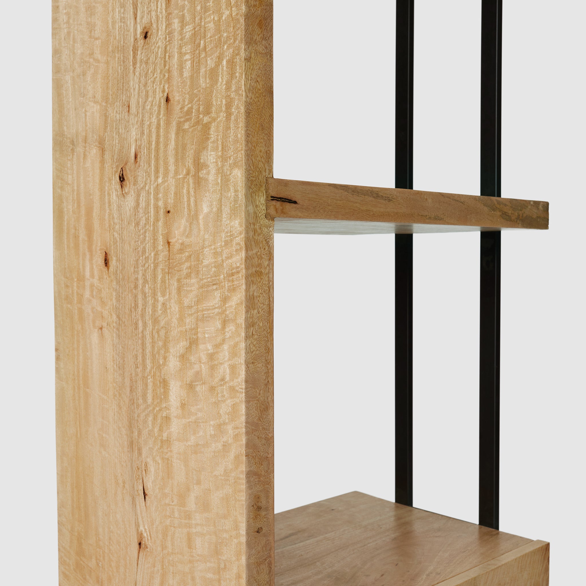 Introducing the Favetti Bookcase, a masterpiece of solid mango wood and sleek design that seamlessly blends form with function. This larger version beautifully showcases the natural grain of the mango wood, framed on one side by a bold black metal structure that adds a modern edge. With two spacious drawers and three generous shelves, the Favetti Bookcase offers ample storage while serving as a striking statement piece. It’s more than just furniture; it’s a celebration of nature’s raw beauty and refined design, perfect for elevating any sophisticated space.