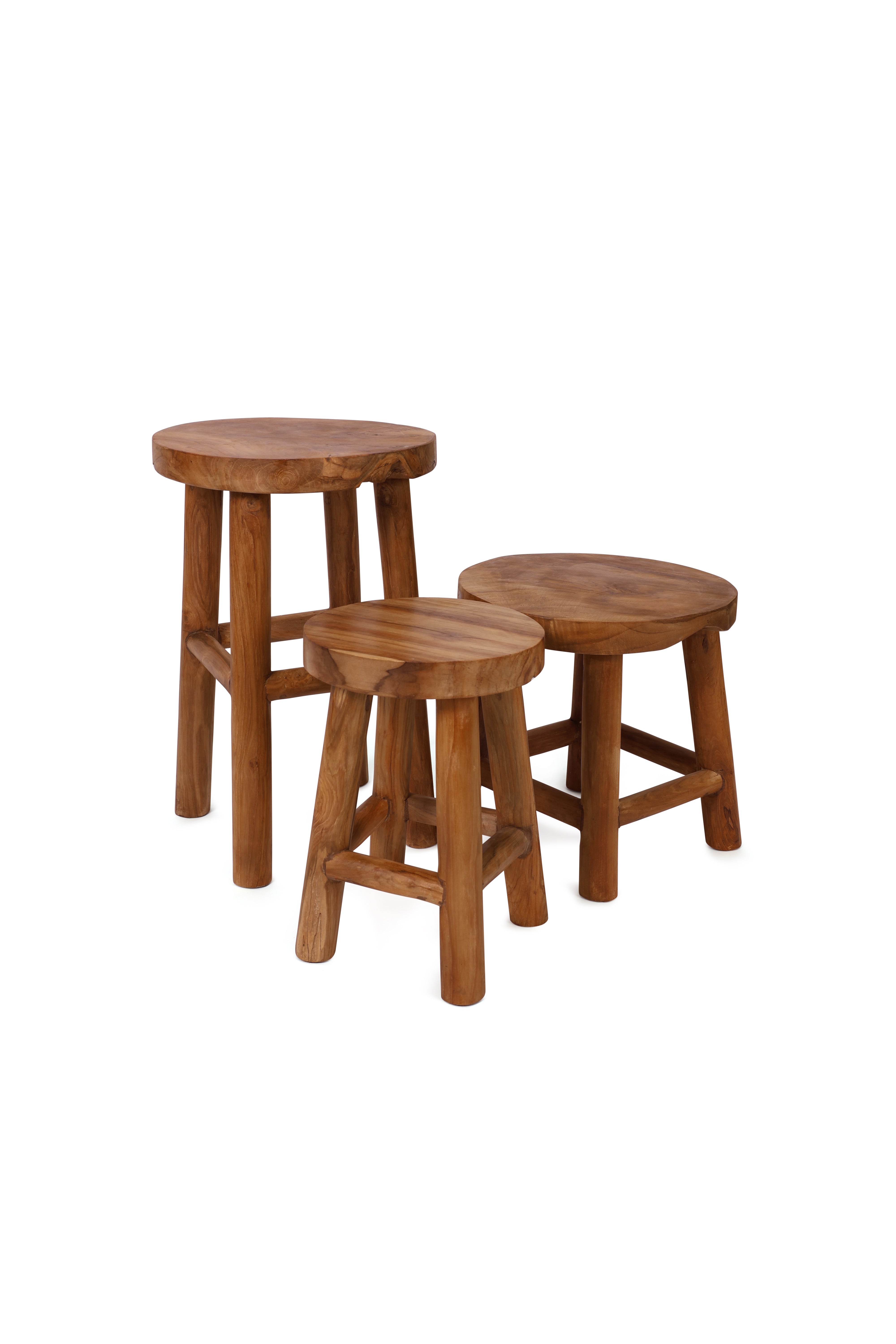 Handcrafted from solid teak, the medium Java Teak Stool is a versatile piece with sculptural warmth. With its rounded seat and stable four-legged base, it serves beautifully as occasional seating or as a textured side table in living areas, bedrooms, or outdoor zones. Naturally durable and weather-resistant, teak makes this stool suitable for both indoor and covered outdoor use.