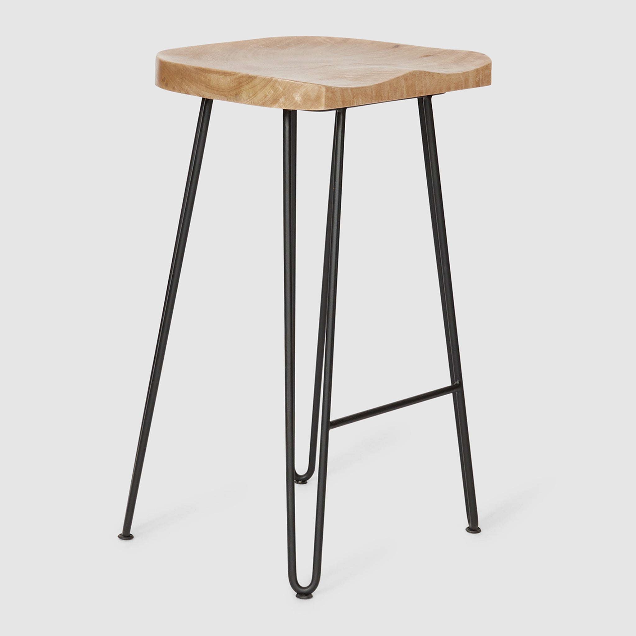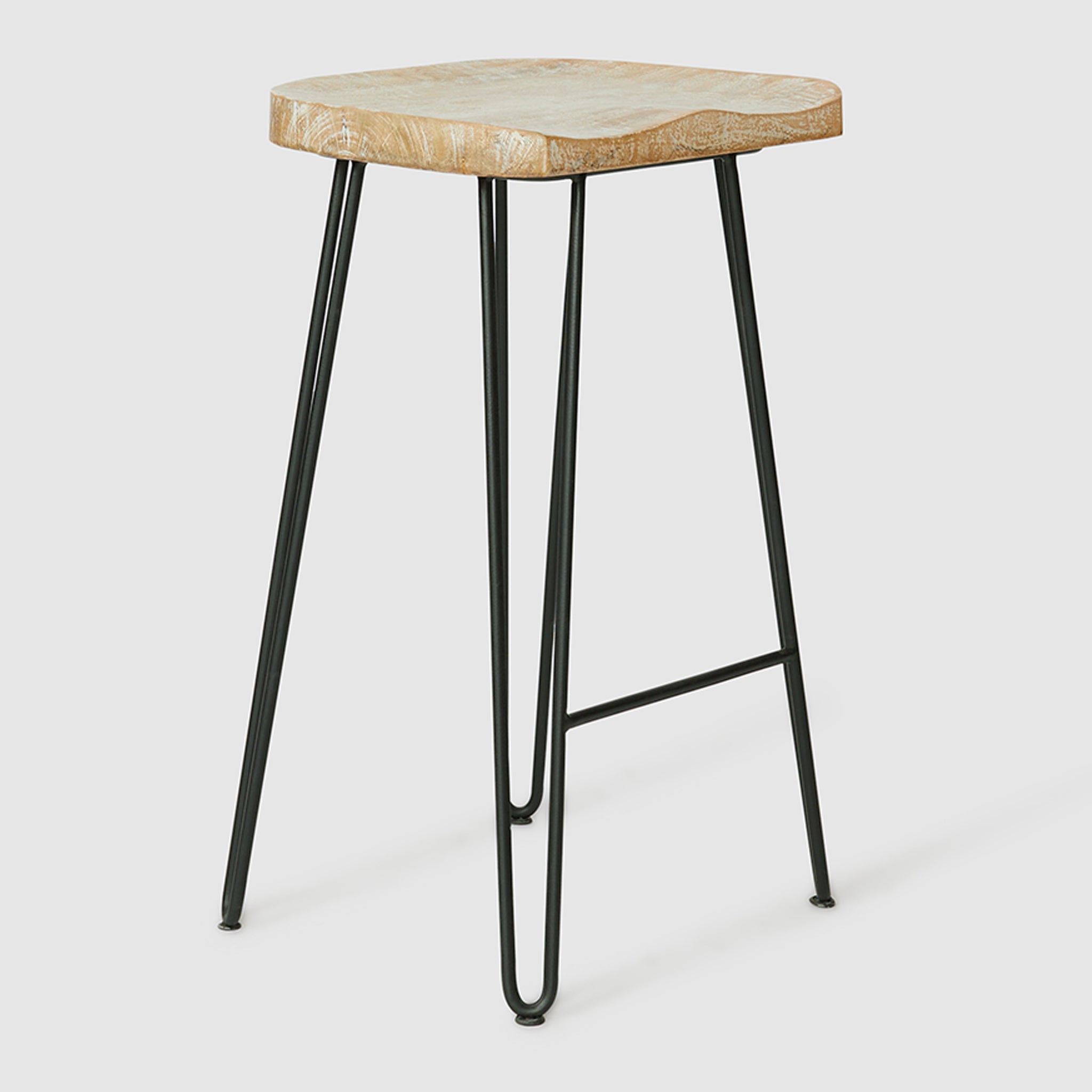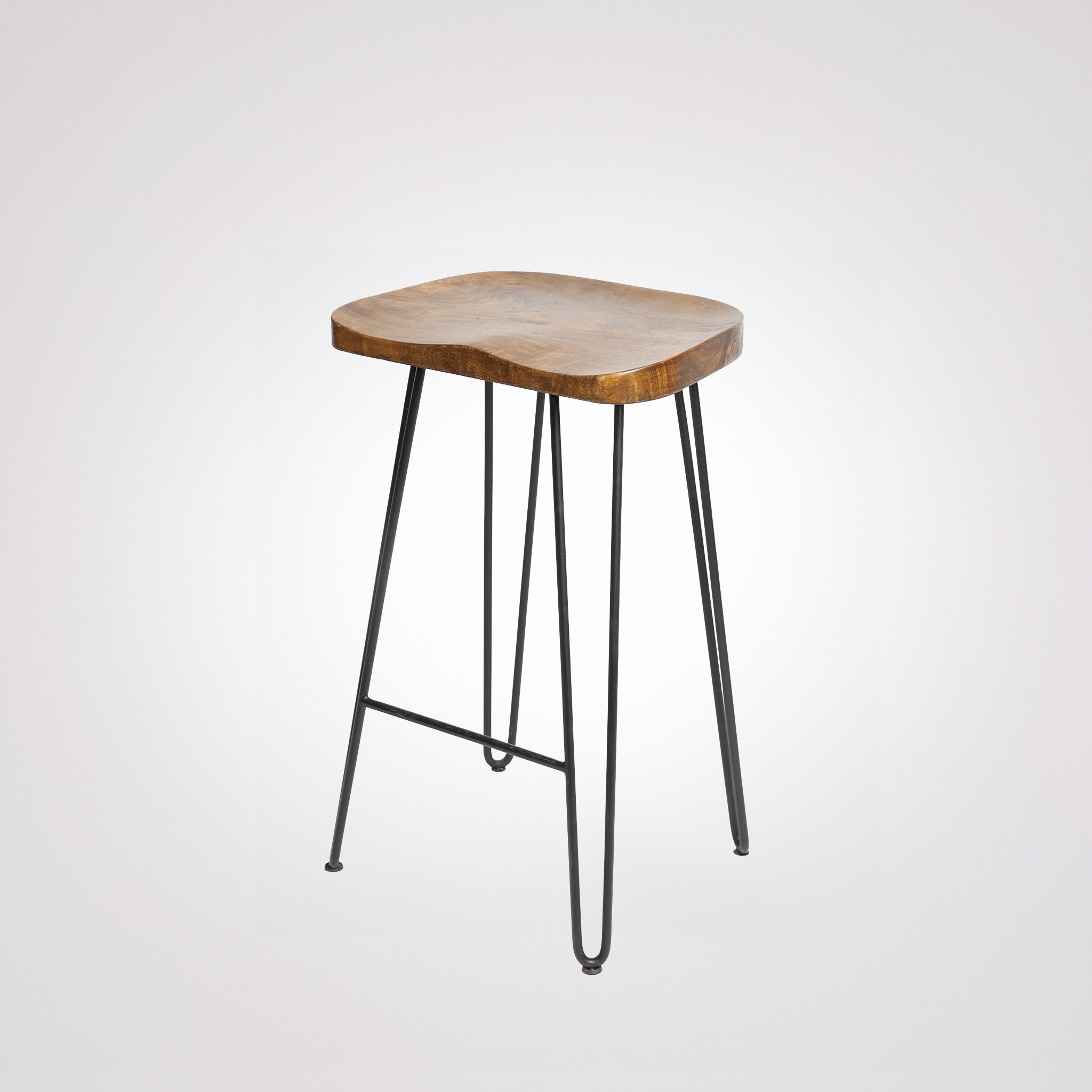 Meet the Mala Barstool, where solid mango wood meets sleek black metal. Each seat uniquely showcases mango wood's natural grain, anchored by sturdy black metal legs. The Mala Barstool isn't just seating—it's a blend of rustic allure and modern sophistication, celebrating nature's refined artistry.