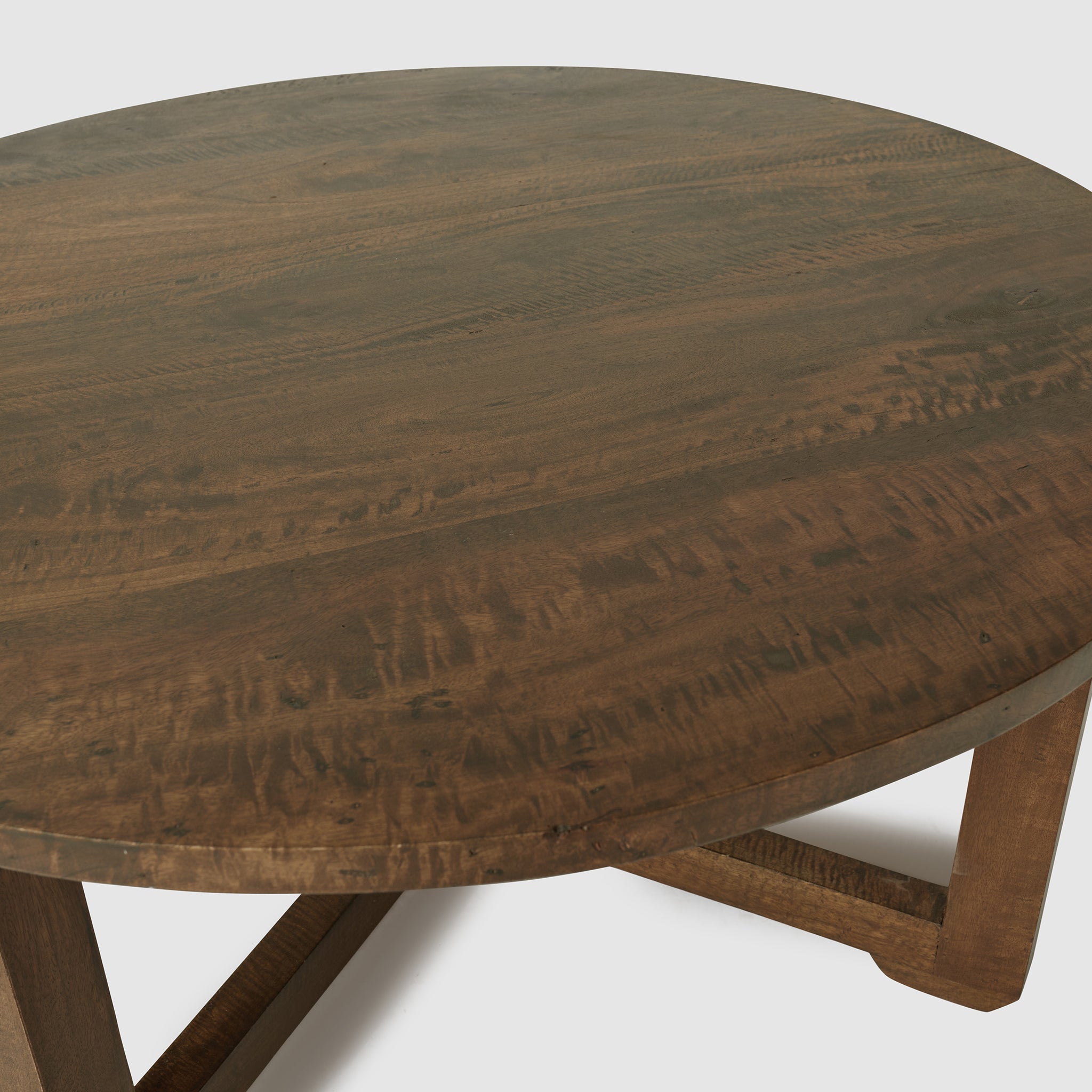 The Monroe Coffee Table combines rustic charm with modern craftsmanship, crafted from solid mango wood. Its round tabletop showcases the rich grain and warm tones of the wood, making it a striking centrepiece for your living space. Supported by a sturdy, cross-braced base, the Monroe offers ample surface area for decor, books, or entertaining. With its timeless design and robust build, this coffee table is perfect for adding both style and functionality to your home.