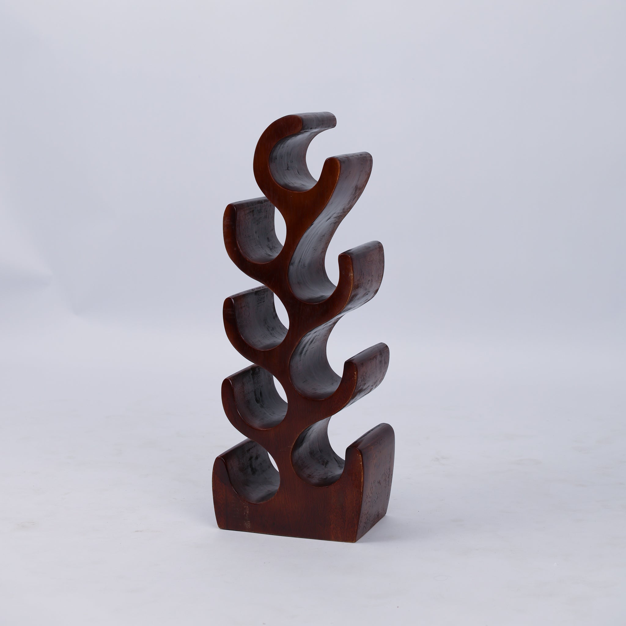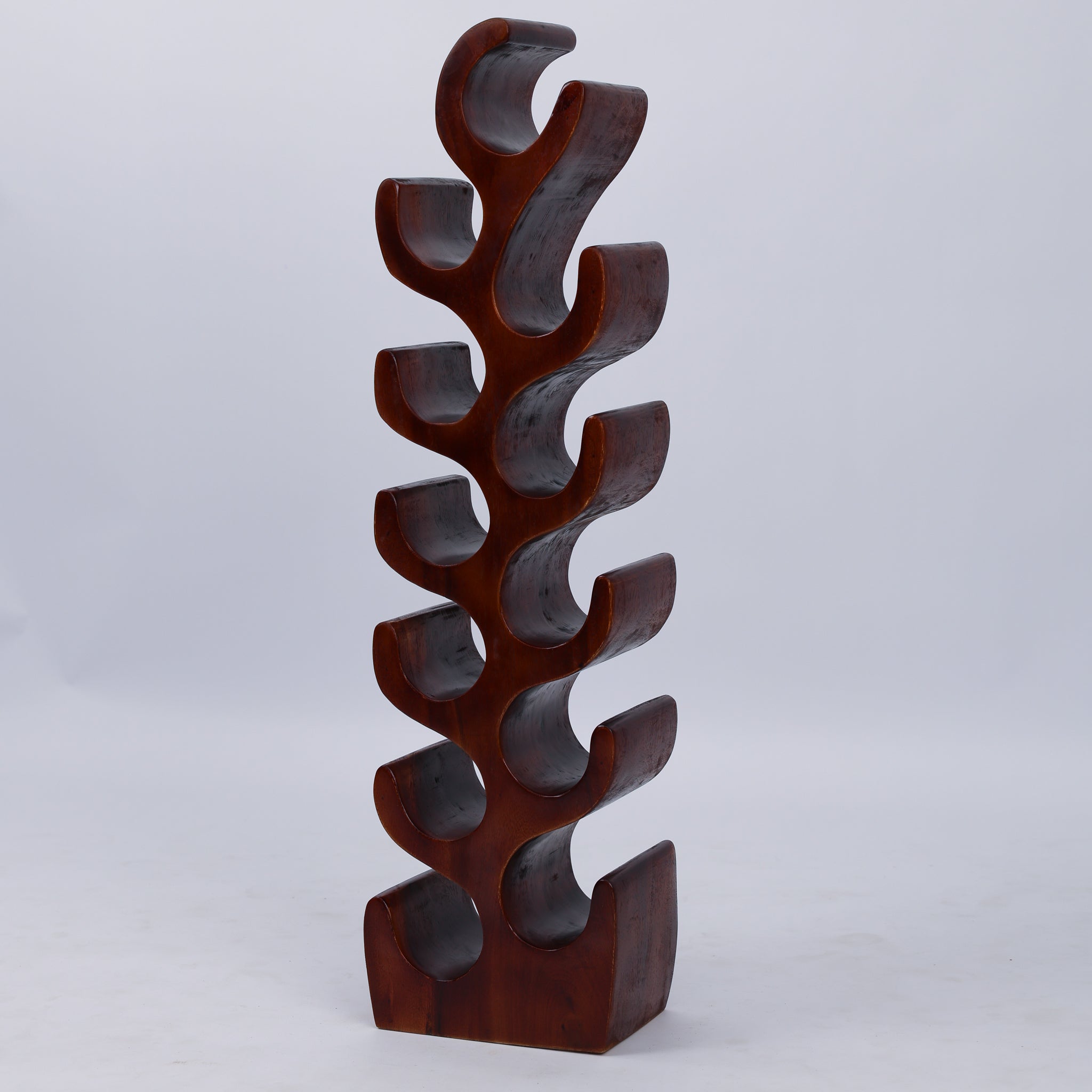 Hand-carved from solid suar wood, the Suar Wine Holder brings warmth, movement, and organic character to your space. Its flowing form doubles as both wine storage and a sculptural display piece — a functional accent for dining areas, kitchens, or cellars. Choose from three sizes to suit your collection.