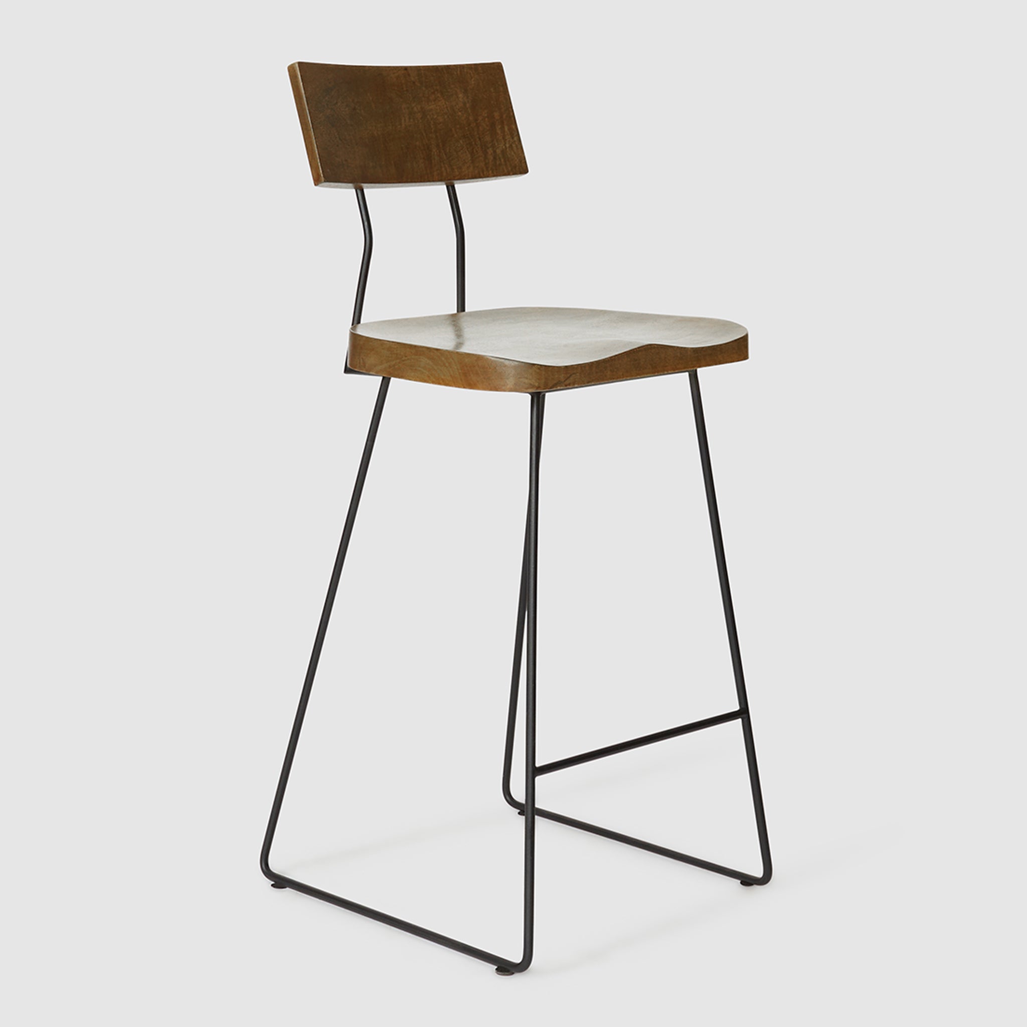 Showcasing the Zara Bar Chair, a marriage of solid Mango Wood's organic allure and the stark elegance of black metal. Elevated on streamlined black metal legs, the Zara captures the balance between age-old warmth and modern flair, serving as a sophisticated seat for any occasion. The intricate grain patterns of the mango wood echo tales of nature's handiwork, suggesting that the Zara is more than just seating—it's a celebration. This bar chair is a testament to refined luxury and innovative design, sure to enrich any ambiance.